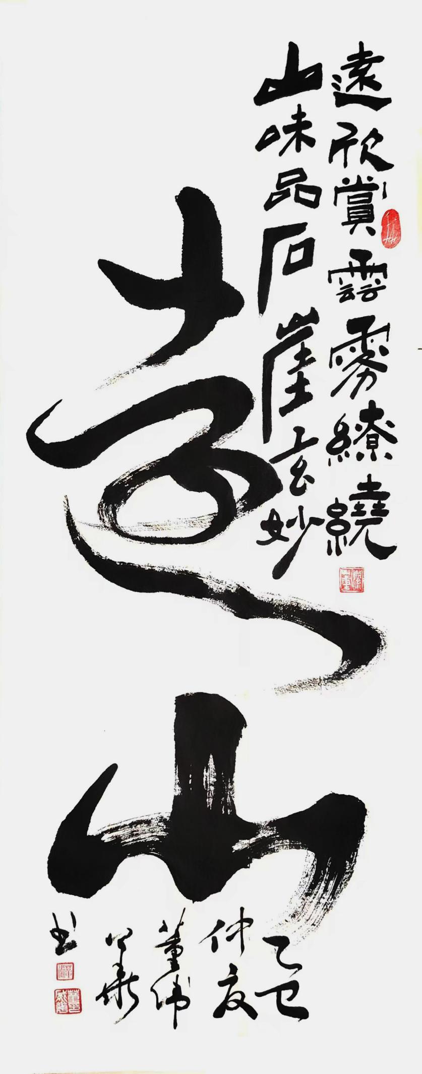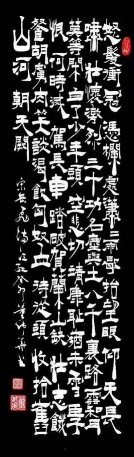 在多年研习书法中,遍访名师,游历名山大川,寺圣古迹,对古碑、古篆、老帖、摩崖、金石热恋痴迷,从中感悟,尽可多得古法精髓,滋养根基,决心先做隐者,静心感悟中国书法承古创新的清醒认知,并深入研究书法理论引导创作,再待厚积薄发。经潜心悟道,方知书法艺术,绝不是学字、写字、练字这么简单的重复过程。它是一门综合艺术,需要大量知识的积累与沉淀。一直寻求诗、书、画、意融为一体,书者悟、观者思,字在纸上,意在画外,境在乾坤。寻古迹、有活力,守章法、谋布局,重在笔画变化,品其中情趣,方可弊之一目而过。