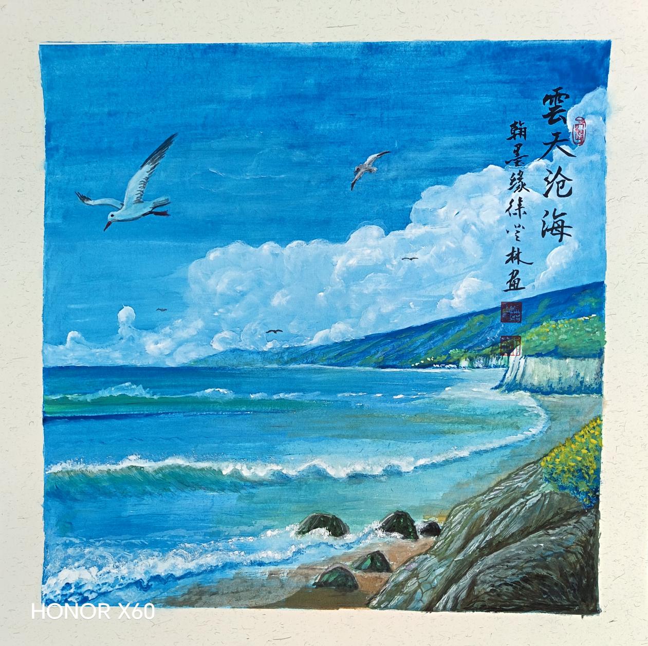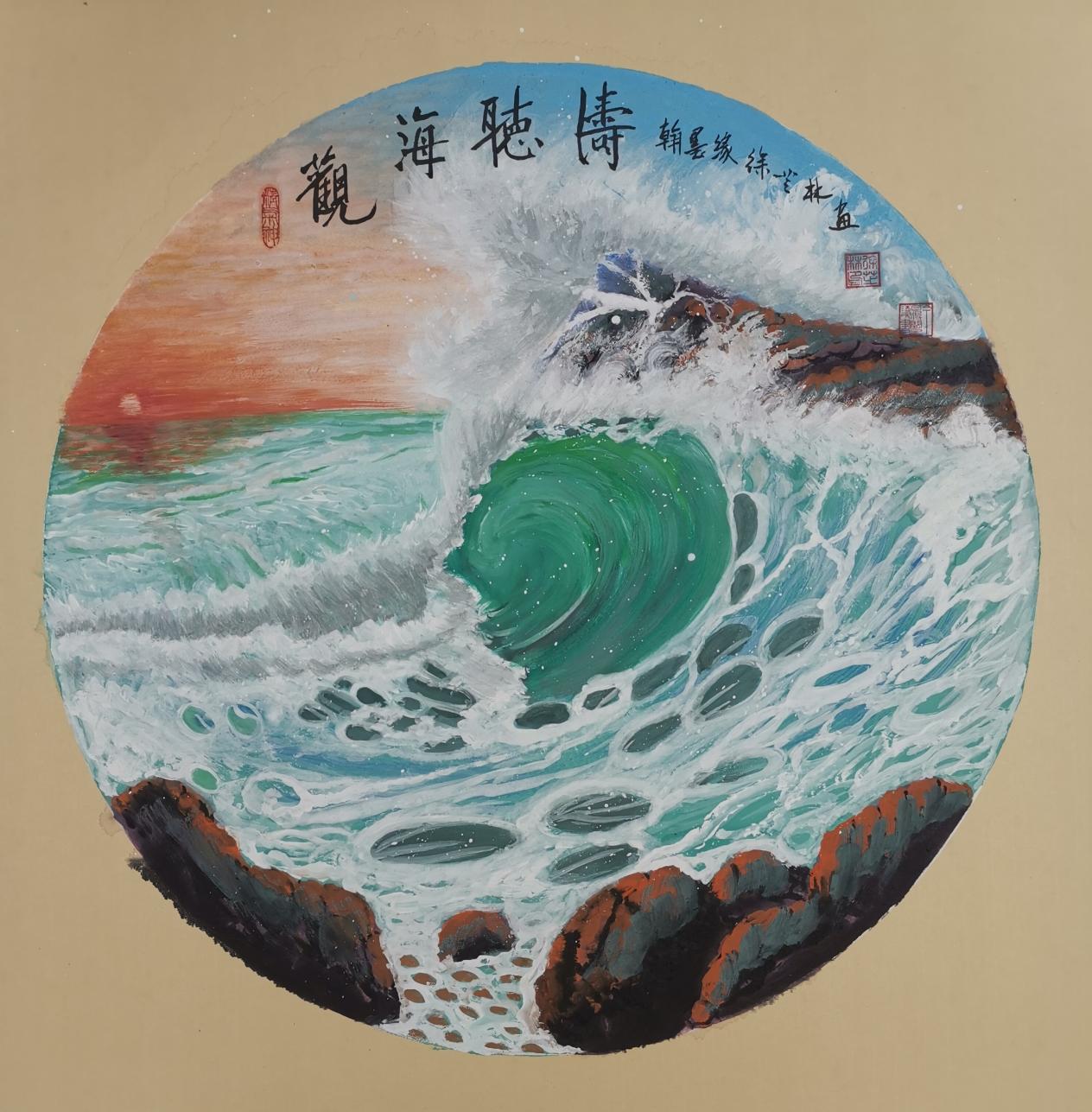 (观海听涛)《在第六届社会美育国际艺术节[2024表情]中央美术学院,西班牙基金会。纽约亚洲基金会,获奖一等奖》。
