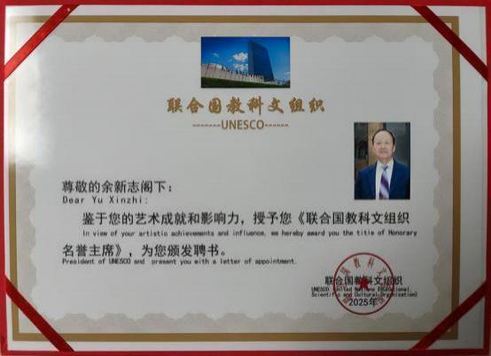 “联合国教科文组织名誉主席 ”经严格评选,全世界只评选了三位,美洲、欧洲,亚洲就是余新志,关键时需要出场才出场把关。