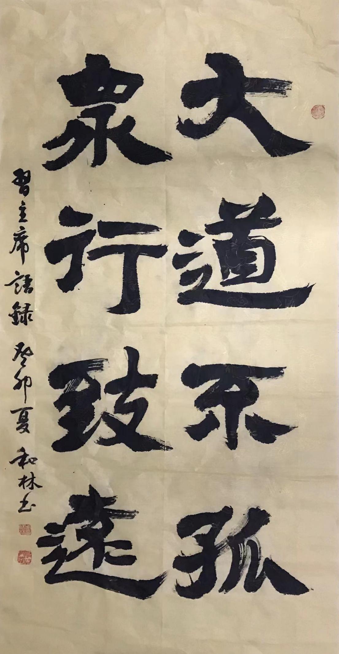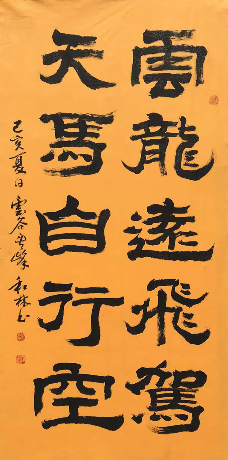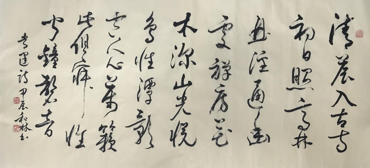 周和林对两汉的简牍书法有特别深入的研究和实践,他的书法作品线条有强有弱、有虚有实、有粗有细,这些对比变化在书体中显示出一种节奏感,通过这种节奏抒发自己的情感。他的作品熔碑帖于一炉,达到形神兼备的境界,并将金石之气融入行草之中,使行草之作更加雄浑潇洒、苍峻古朴。