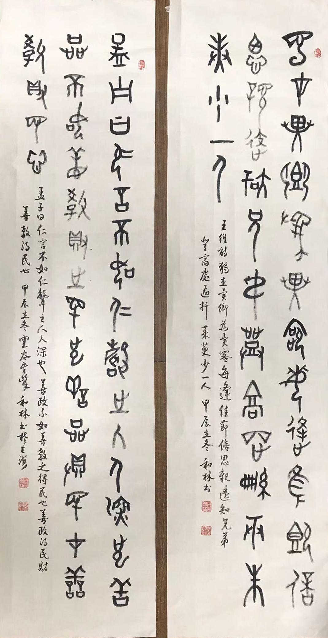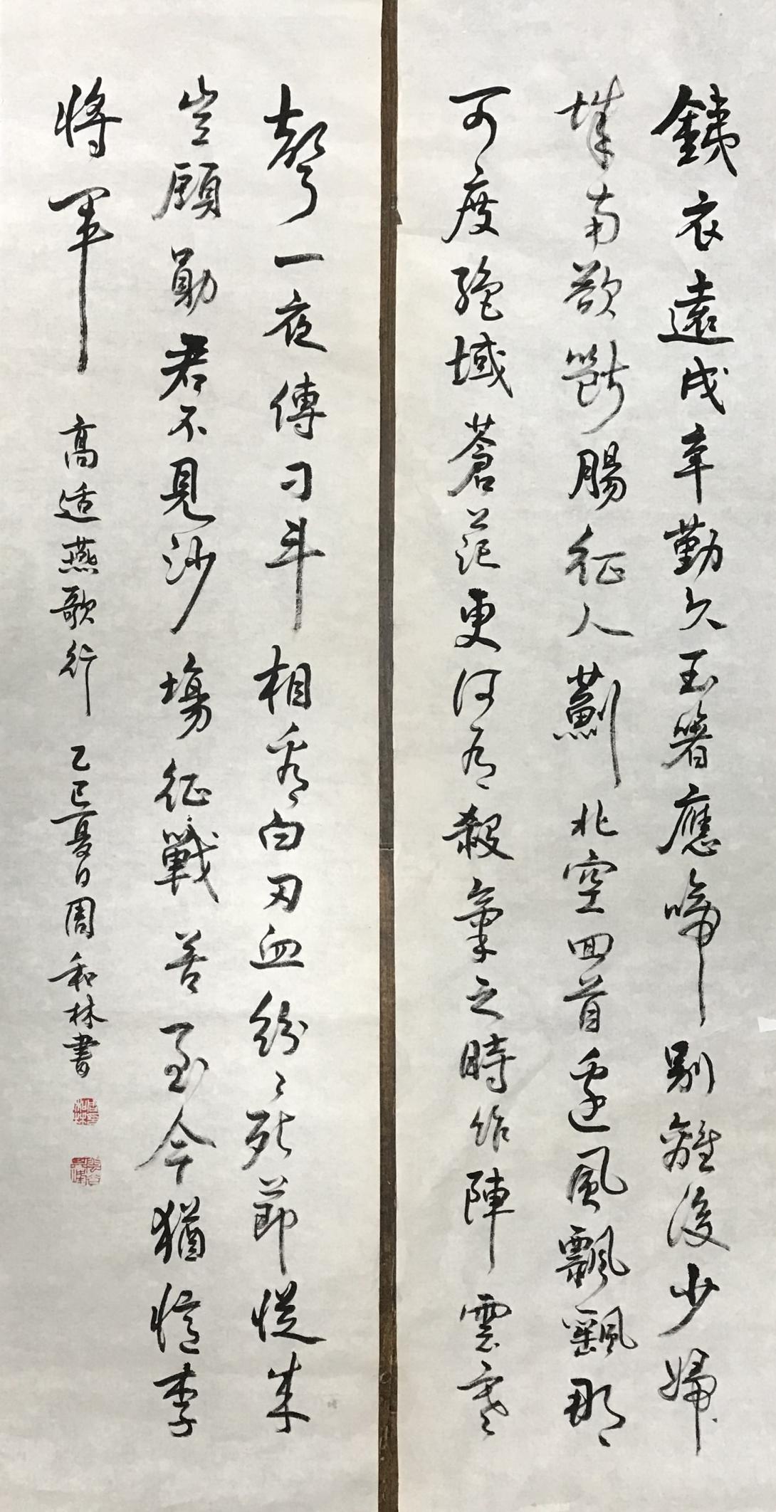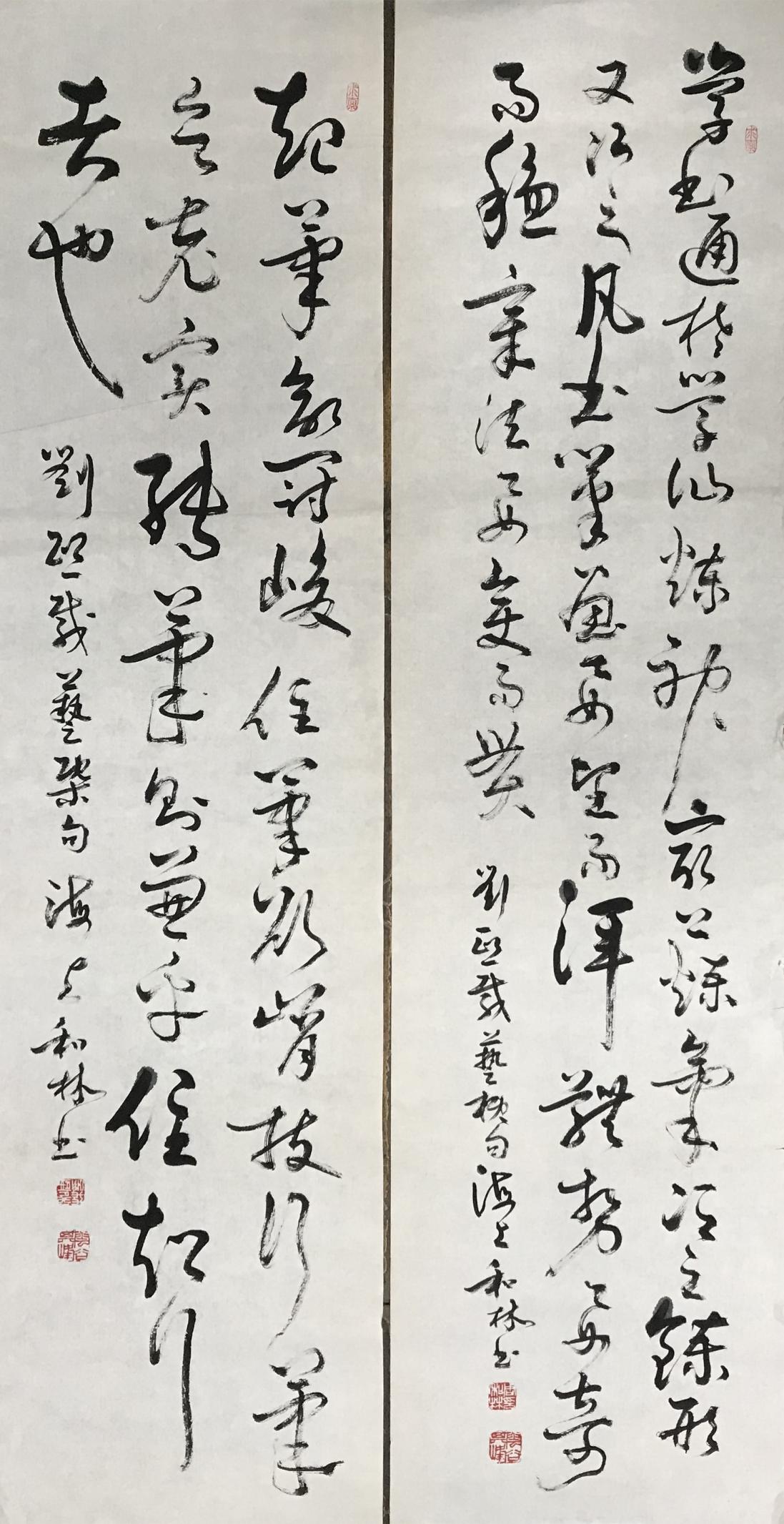 周和林对两汉的简牍书法有特别深入的研究和实践,他的书法作品线条有强有弱、有虚有实、有粗有细,这些对比变化在书体中显示出一种节奏感,通过这种节奏抒发自己的情感。他的作品熔碑帖于一炉,达到形神兼备的境界,并将金石之气融入行草之中,使行草之作更加雄浑潇洒、苍峻古朴。