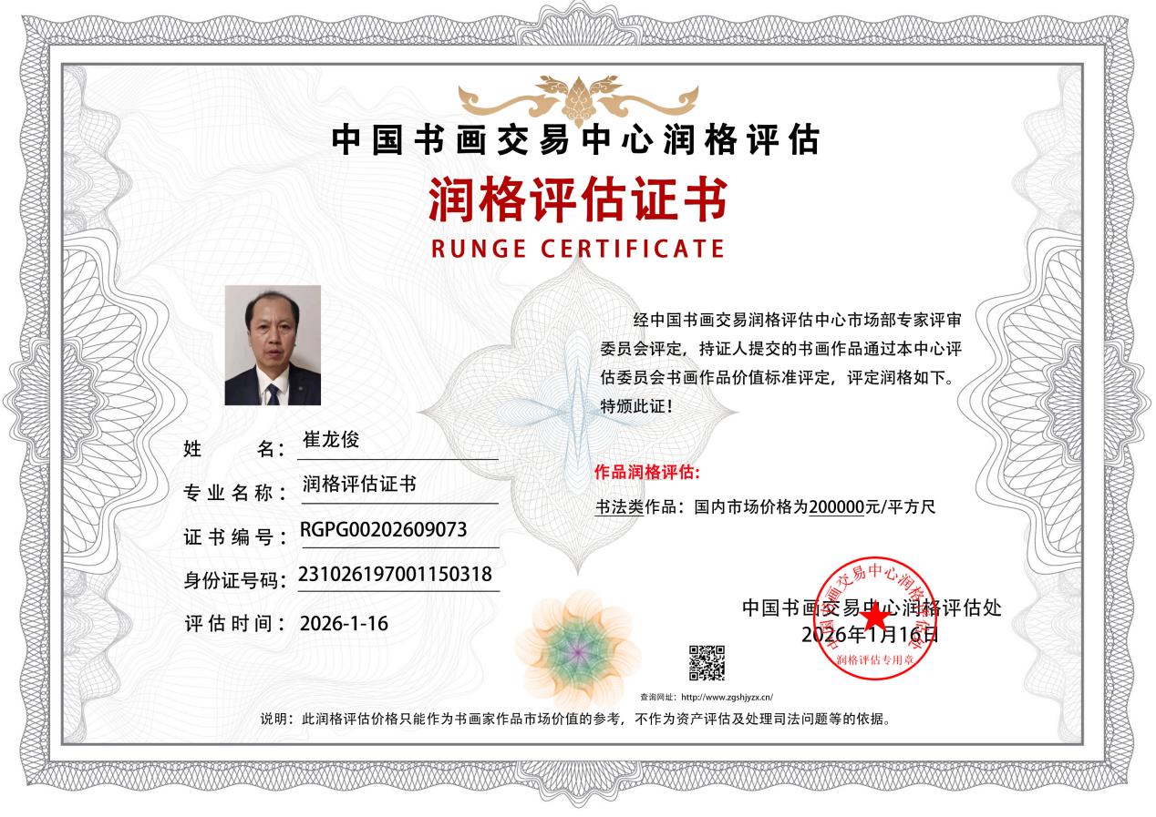 崔龙俊一书法大家崔元泽传承人。1970年1月生于黑龙江省密山市书生门第之家。从小跟父亲学习书法,特别是父亲学习欧阳中石1985年创办的《中国书画函授大学》1985年-1989年4年中精通书法全部课程。理论联系实践刻苦钻研!参加鸡,密,虎书法大赛中获得《一等》奖。上大学时担当学校书协主席。崔龙俊老师北大终身书法客座教授。英国《皇家艺术学院》名誉教授。中国老子、孔子艺术学院客座教授。亚太艺术博物馆客座教授。国际学术研究院客座教授。