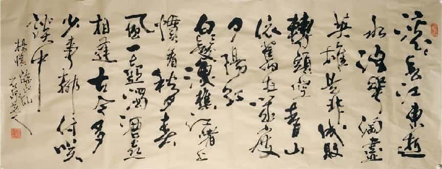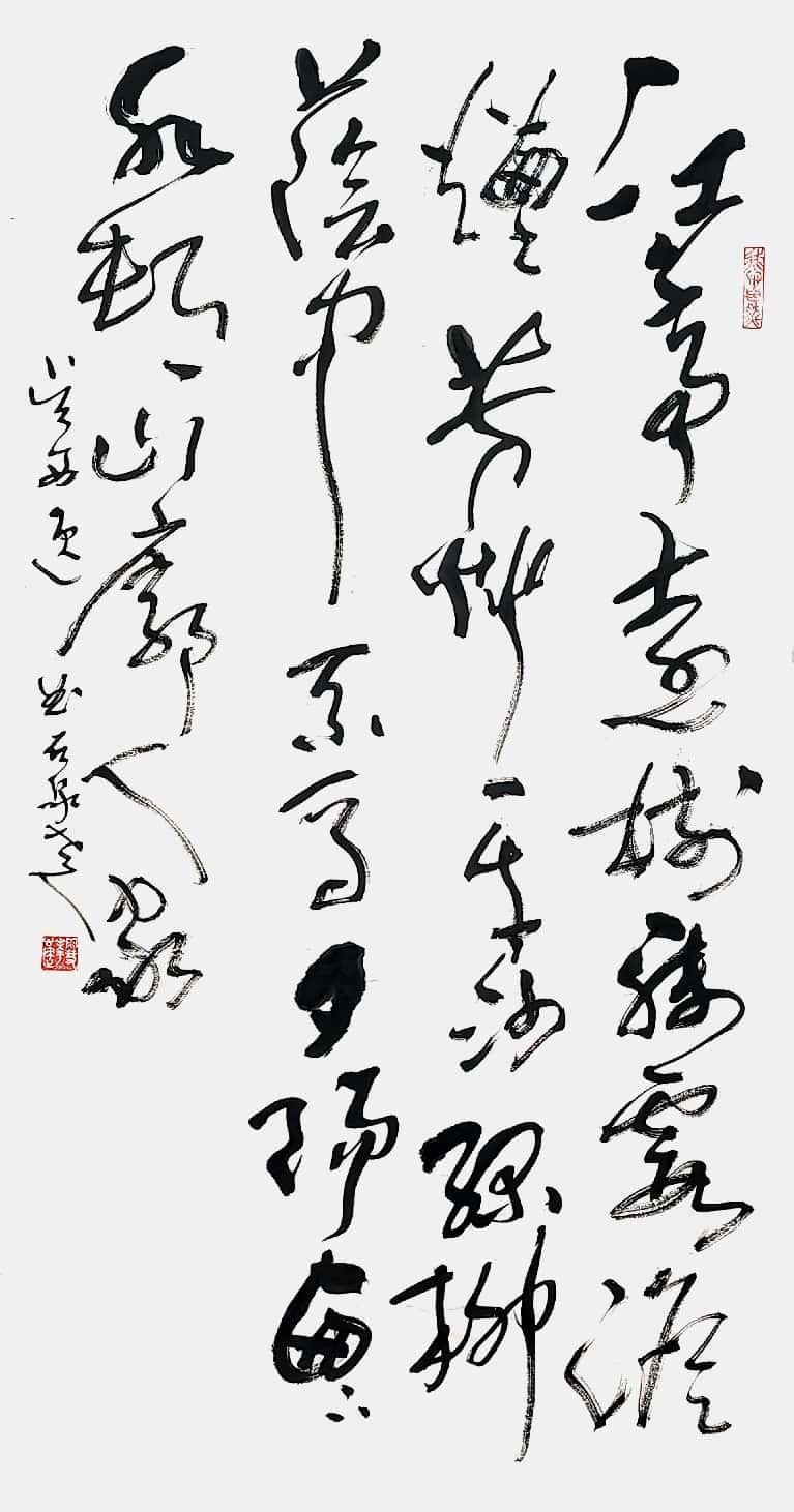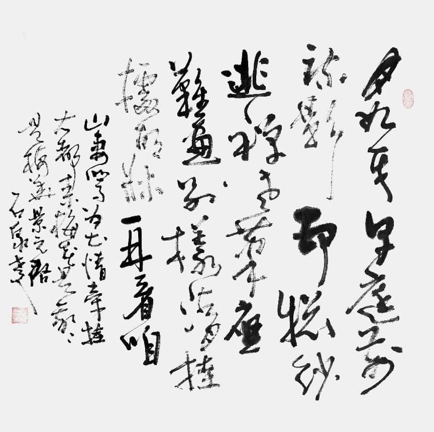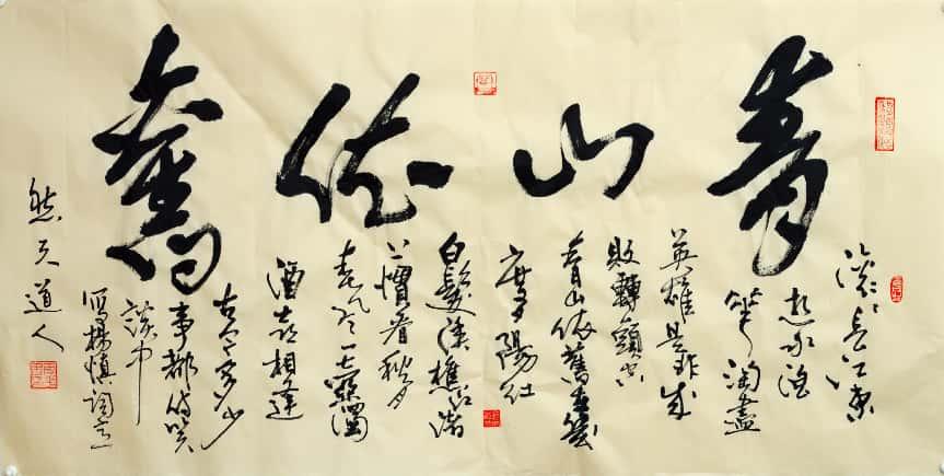 这位自山沟走出来又锲而不舍披荆斩棘前行、默默耕耘砚田又闪烁于艺坛的艺术家。取法乎上,不囿成法,步古出新,厚积薄发,信手挥洒,纵横捭阖,进技于法,出法为艺,入艺悟道。他常自称自己是个书法行者,虽人生之路崎岖多舛,而对书艺的追求却孜孜不倦,稳行致远。他为人随和宽厚,待人率真诚恳,热爱自然,性情洒脱,“独与天地精神往来”,让心驰骋在广渺浩瀚的宇宙之间,将天地浩然之气流注笔端。蓦然回首,试看先生,信在灯火阑珊处!